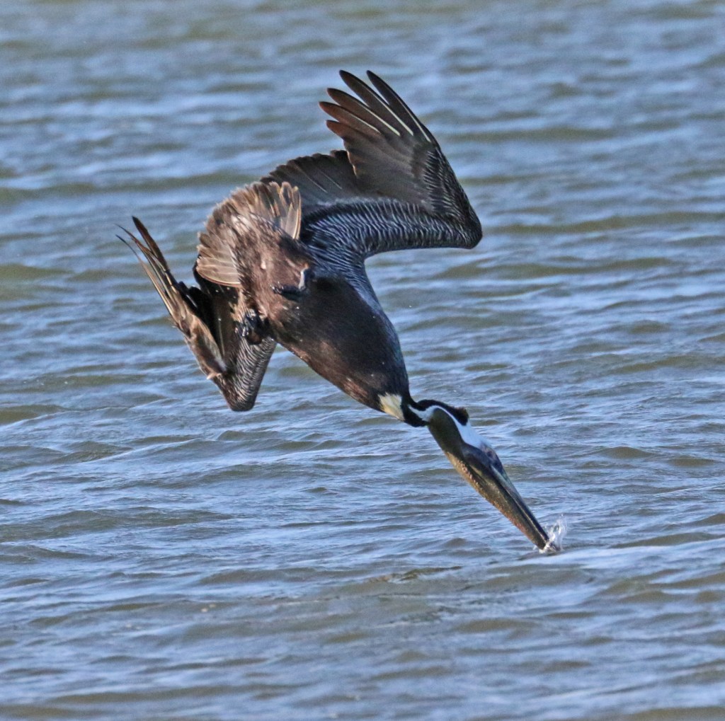 GO—Having selected its prey, a brown pelican demonstrates its amazing plunge-feeding behavior.