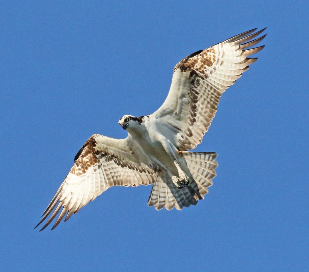 Now here I sat, giddily chowing down next to a nest full of ospreys within arm’s reach of my table. This happy circumstance was due to a combination of facts. First in 1972, came the ban of production and application of DDT in the United States. Second, the nation’s fish and wildlife agencies constructed wooden nesting platforms—designed specifically for ospreys—throughout most of our coastal estuaries and marshlands. As a result today, osprey populations in the United States have made an incredibly strong recovery. In fact, their comeback has been so successful that now, near any sizable body of water, you can expect to see several of these magnificent avian warriors circling on thermals, hovering over prey, dive-bombing feet-first into the water, and pulling up with large fish carried headfirst in their talons.
